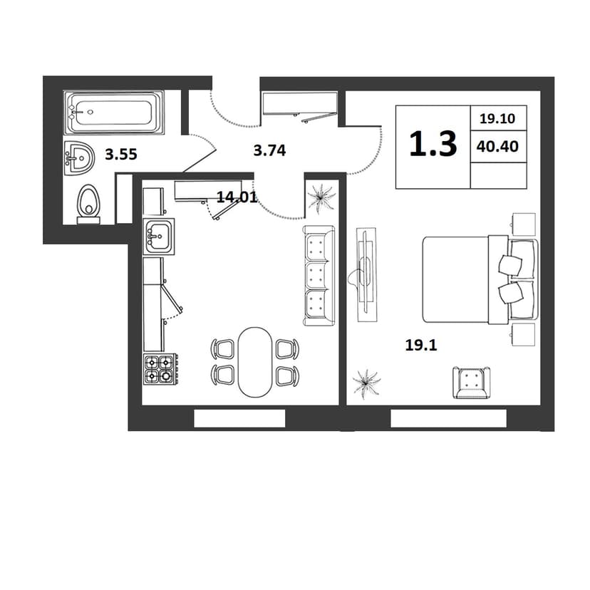Количество комнат - 1