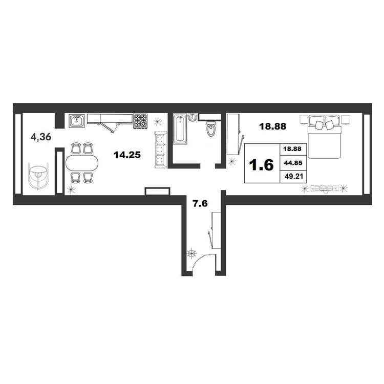 Квартира 44.26 м², 6 этаж