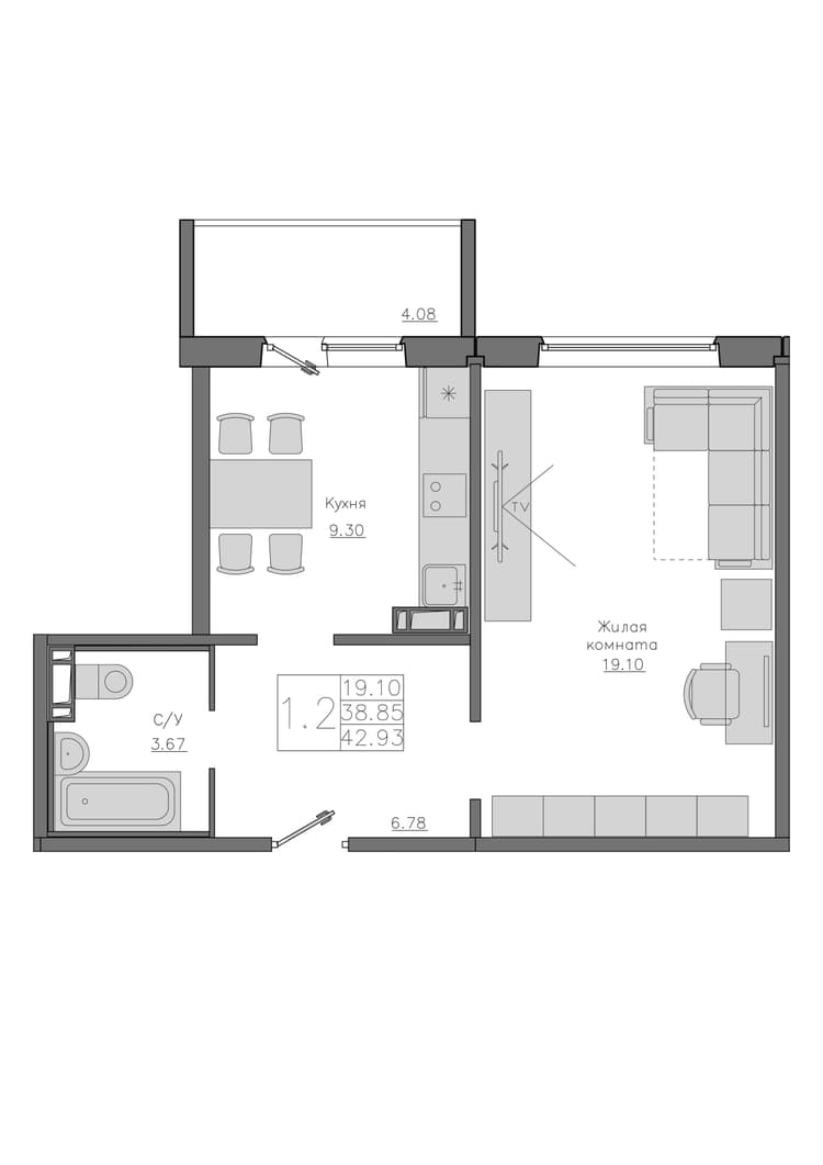 Квартира 38.85 м², 1 этаж