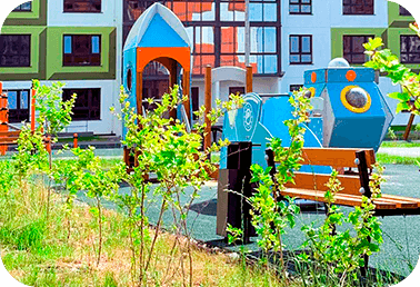 В ЖК “Ивушки” есть всё, что необходимо для комфортной жизни: магазины, кафе, озеленённые площадки, остановки, большое количество парковочных зон и оснащённые детские площадки.